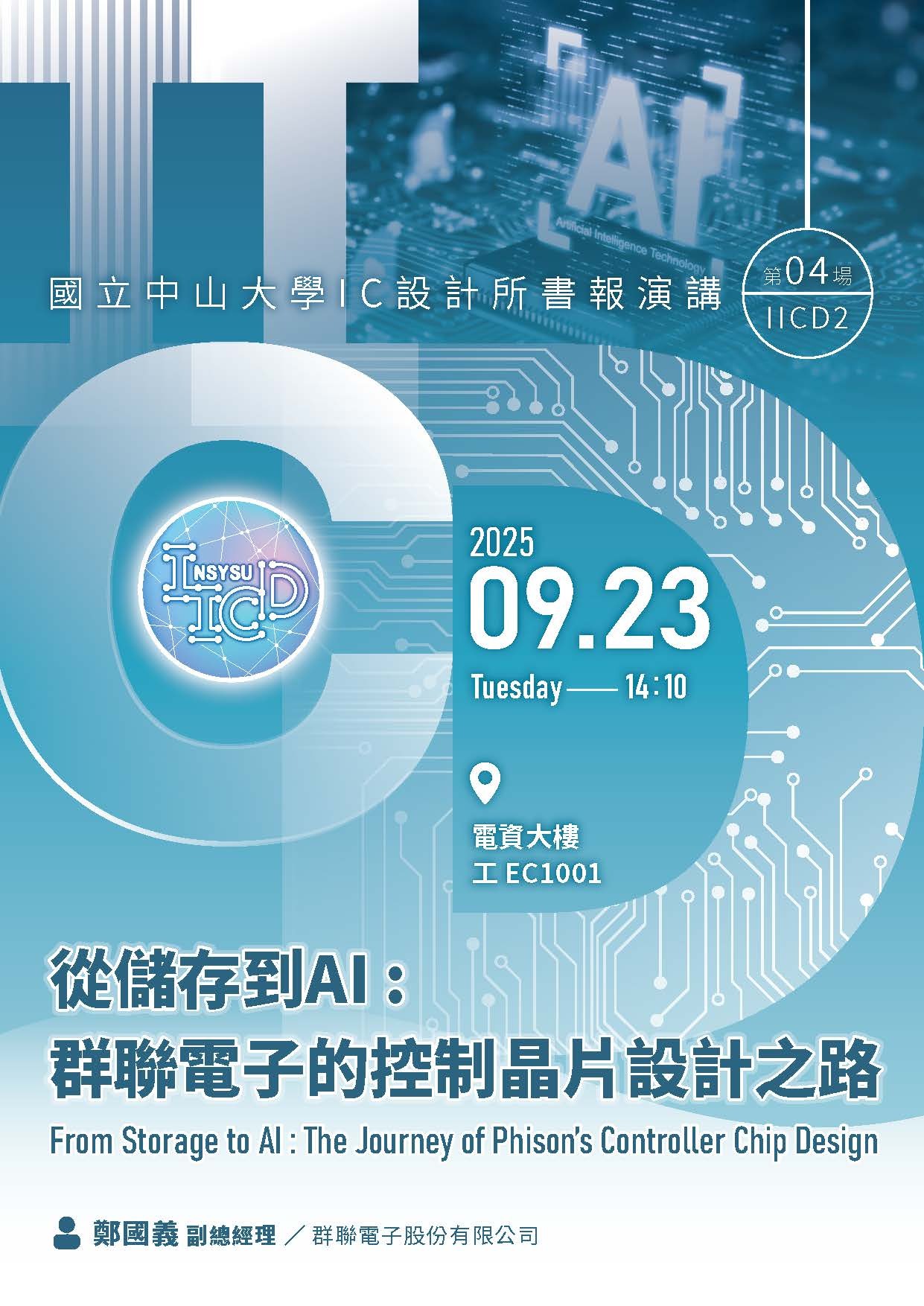 講題:從儲存到AI : 群聯電子的控制晶片設計之路 (From Storage to AI : The Journey of Phison’s Controller Chip Design)