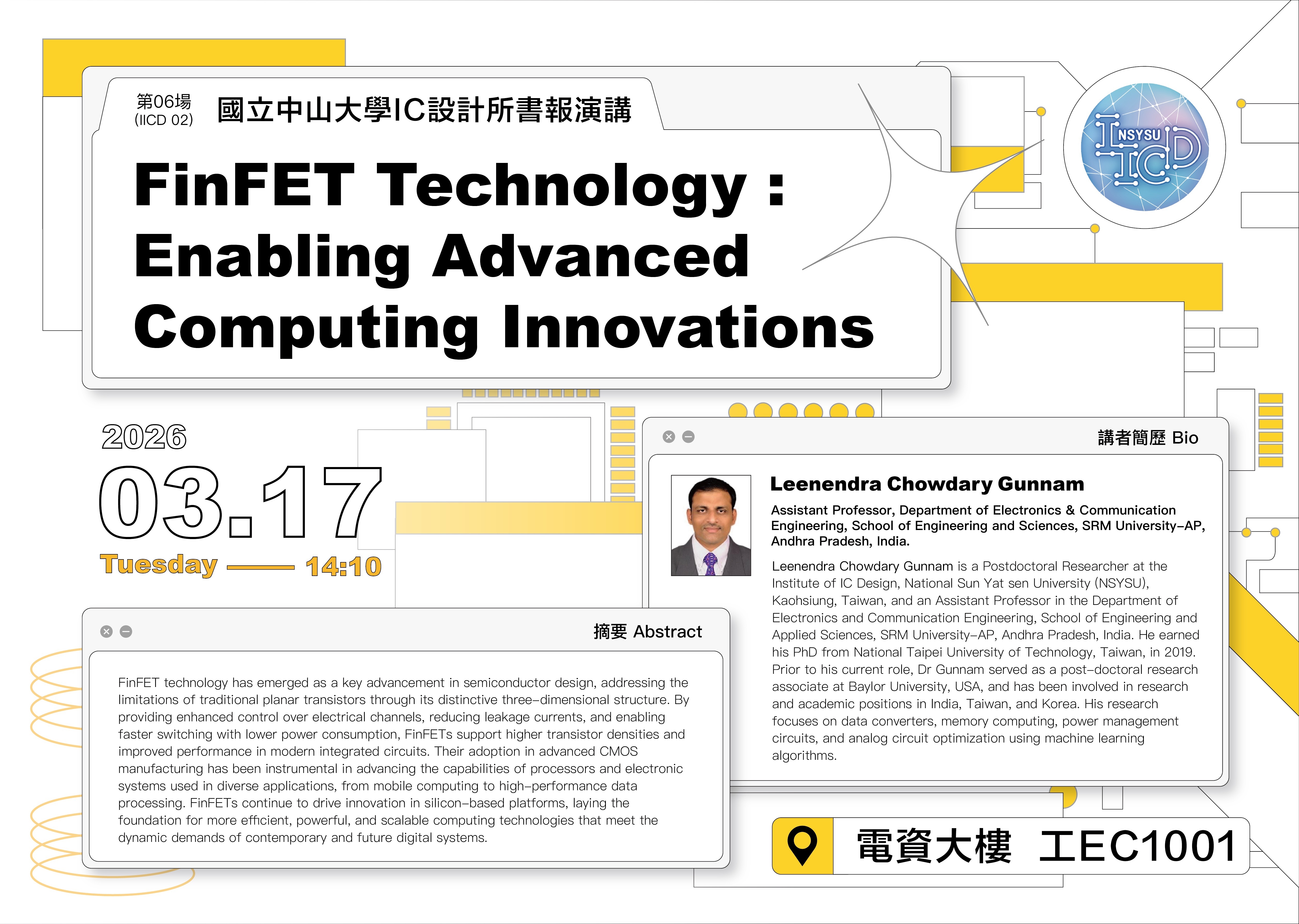 【書報公告】第06場(IICD 02) 115.03.17(二) Dr. Leenendra Chowdary Gunnam,Postdoctoral Researcher, NSYSU
